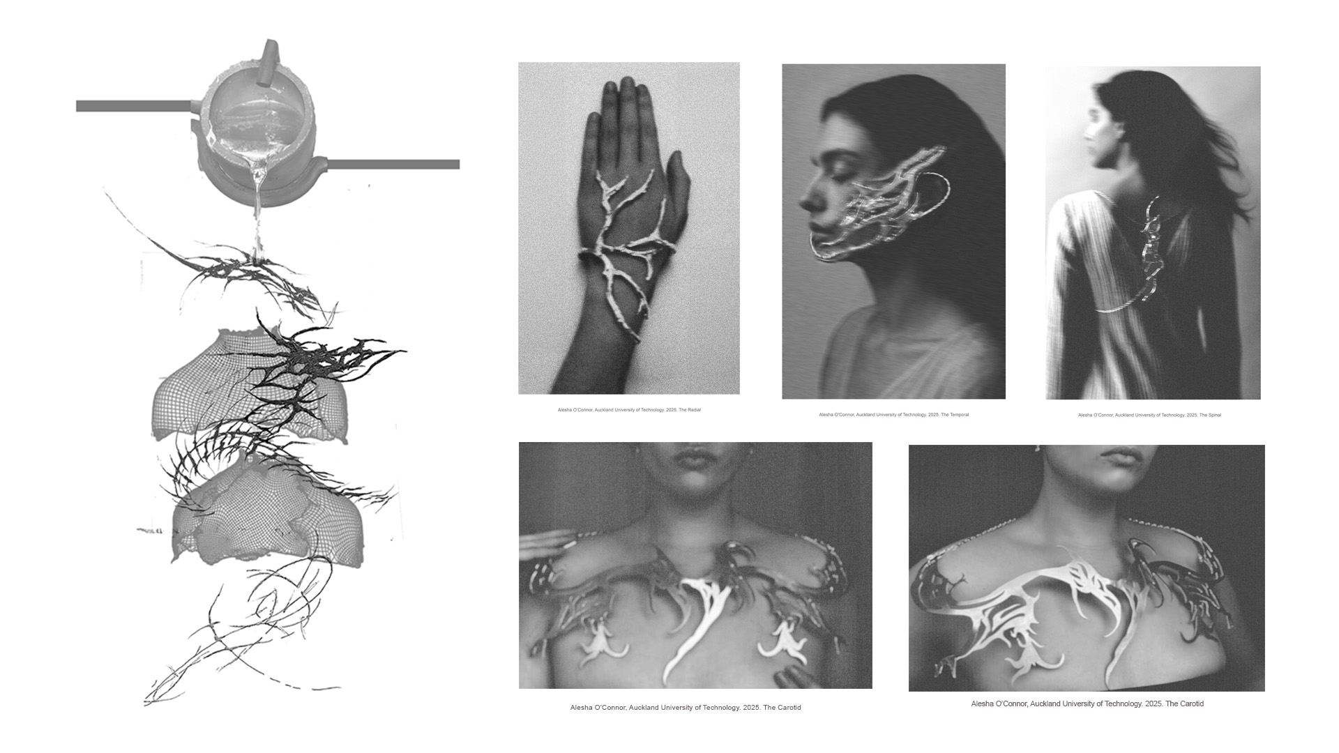Situated on Nuffield Street, Newmarket, Aotearoa, this project presents a jewellery atelier and exhibition that explores how design can transform trauma into tangible forms of comfort, empowerment, and human connection. Drawing on personal experience surviving a house fire, the work investigates adornment as a medium for emotional processing and companionship, using reclaimed and recycled metals alongside immersive spatial interventions to create artefacts and installations that engage the body and senses. Guided by Māori principles of manaakitanga, kaitiakitanga, kotahitanga, and tikanga, the design process emphasised ethical making, cultural respect, and relational responsibility. Collaborative partnerships informed the project, enriching its social impact and reach. The project achieves its aims by immortalising culture and human triumphs through bespoke pieces, advocating augmentation as a positive and transformative design approach, and demonstrating potential to contribute meaningfully to the mental health crisis in Aotearoa.
