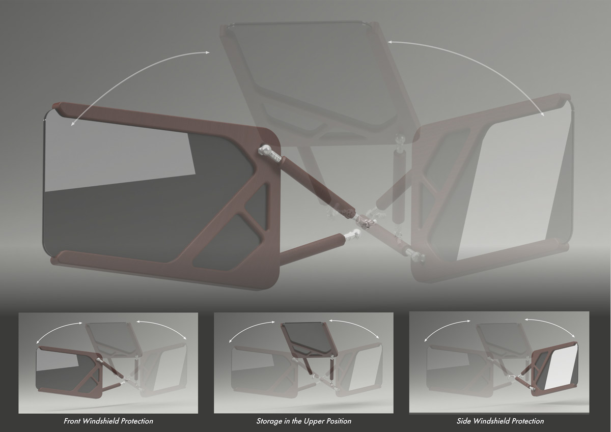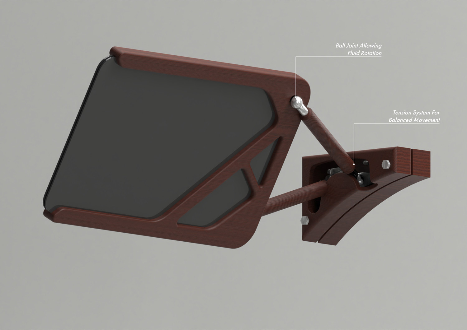 Apex is a reimagined car sun visor that reduces glare and distraction while keeping the driver connected and in focus. Its spring-loaded tension system, built around ball joints and springs, moves smoothly and naturally around the driver, offering quick coverage and easy control without breaking concentration.