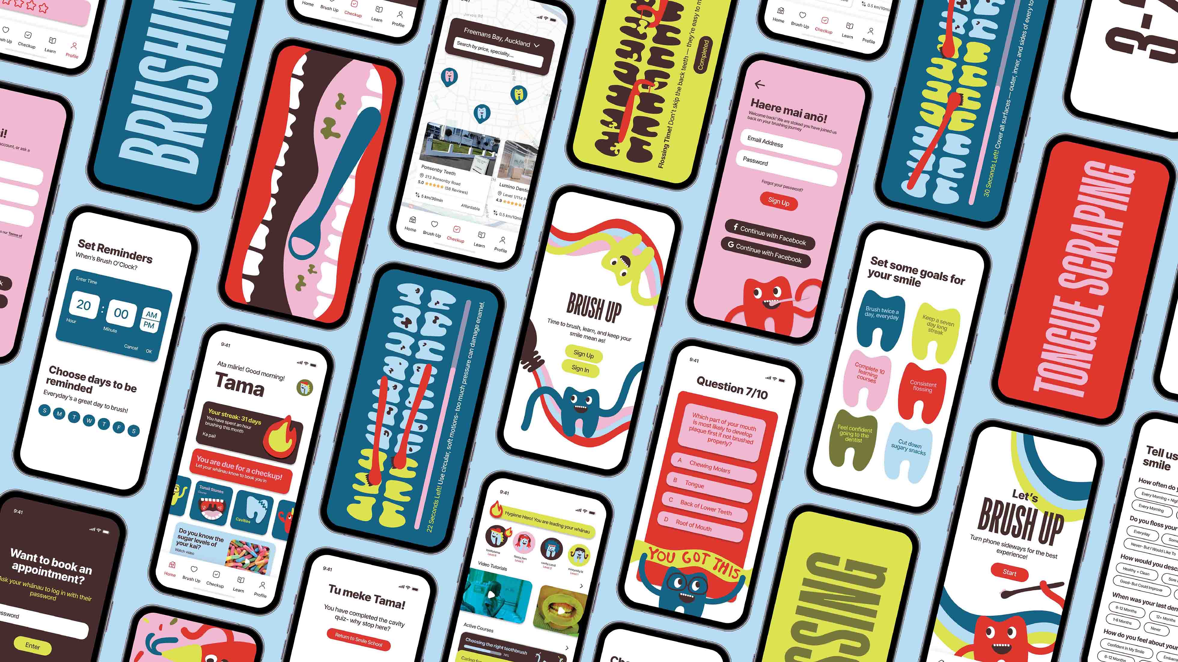 Guided by the question, 'How might a gamified educational app foster engagement and accessibility to support the prevention of dental decay among tamariki aged 5–18?', I developed Brush Up, a mobile app that turns brushing and learning into an interactive experience. Using a practice-led research approach, I drew on insights from health professionals, national statistics, and existing campaigns to identify communication gaps.