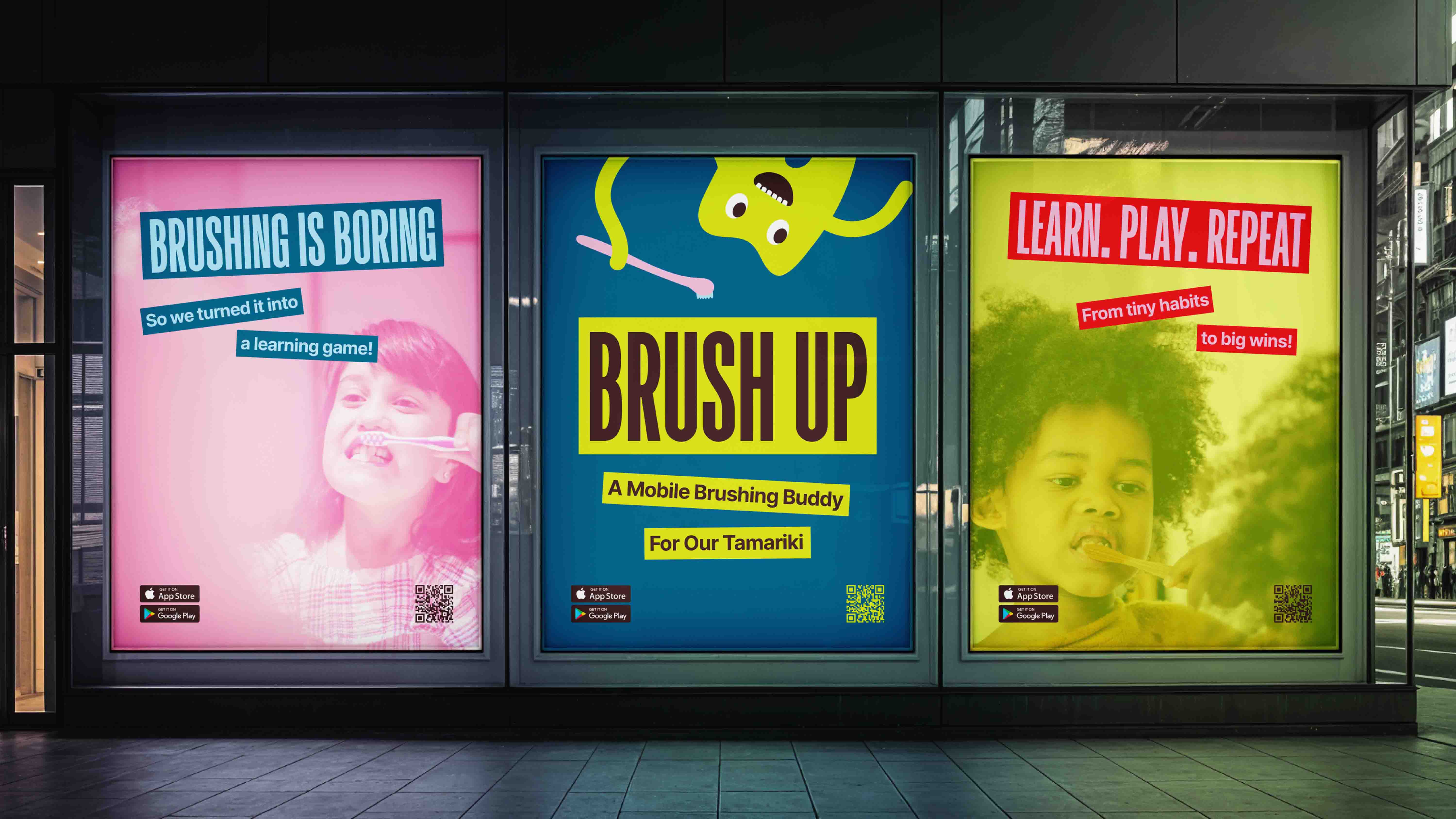 The design integrates playful interaction, character-based learning, brushing timers, and rewards to motivate consistency and confidence. Brush Up demonstrates how design can promote positive behavioural change, reframing oral care from a routine task into an empowering, culturally relevant experience for young people across Aotearoa.