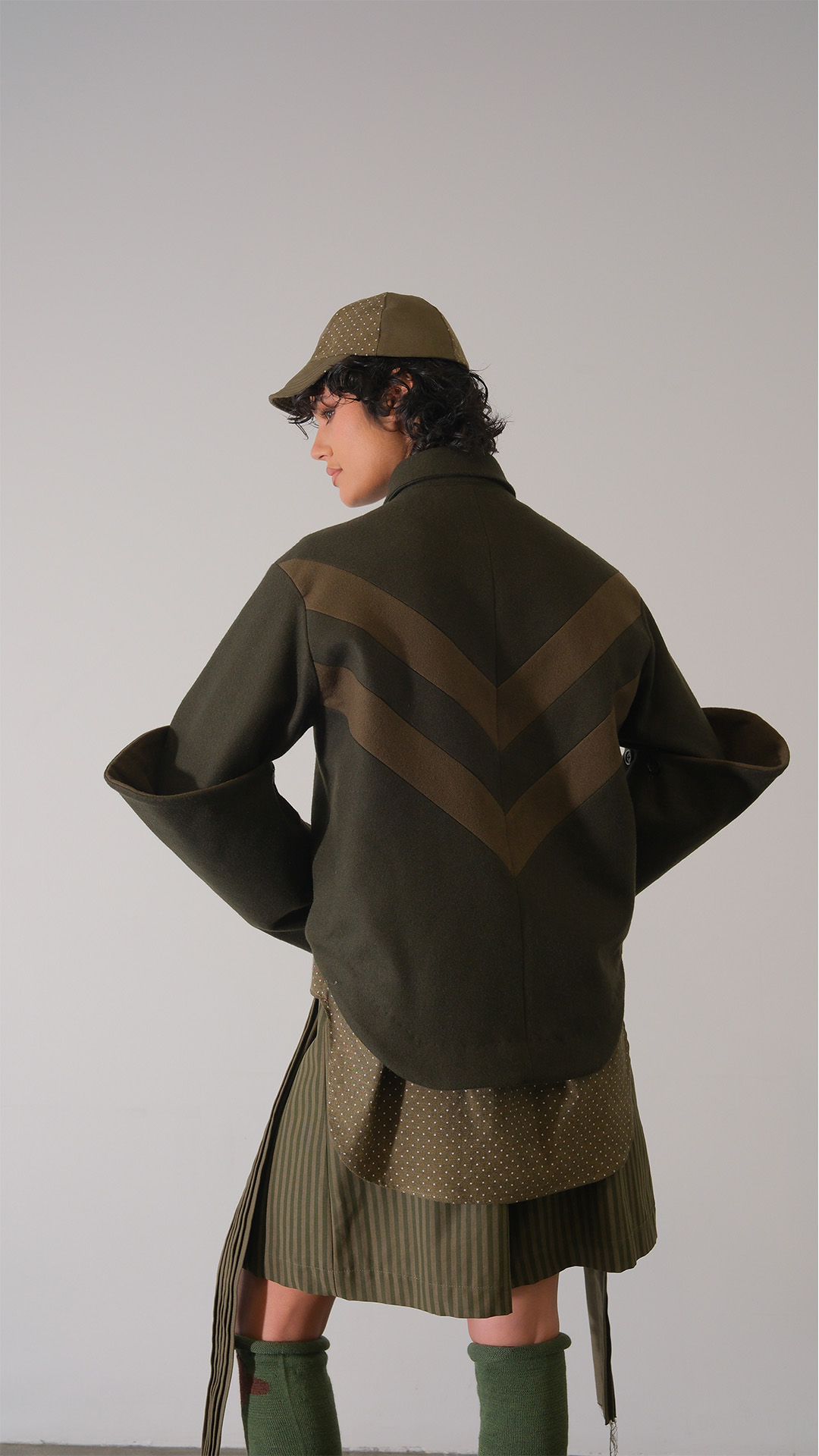 The project explores how garments that enforce conformity can be reinterpreted to express individuality and resistance within a contemporary fashion context. It investigates the cultural and social narratives embedded in uniforms, questioning authority through the aesthetics of structure, imperfection, and disruption. Screen printing operates as a key textile method to exaggerate uniform motifs and reinforce the dialogue between control and rebellion. This process integrates experimental practices and digital fabrication, allowing surface design to become an active site of conceptual expression.