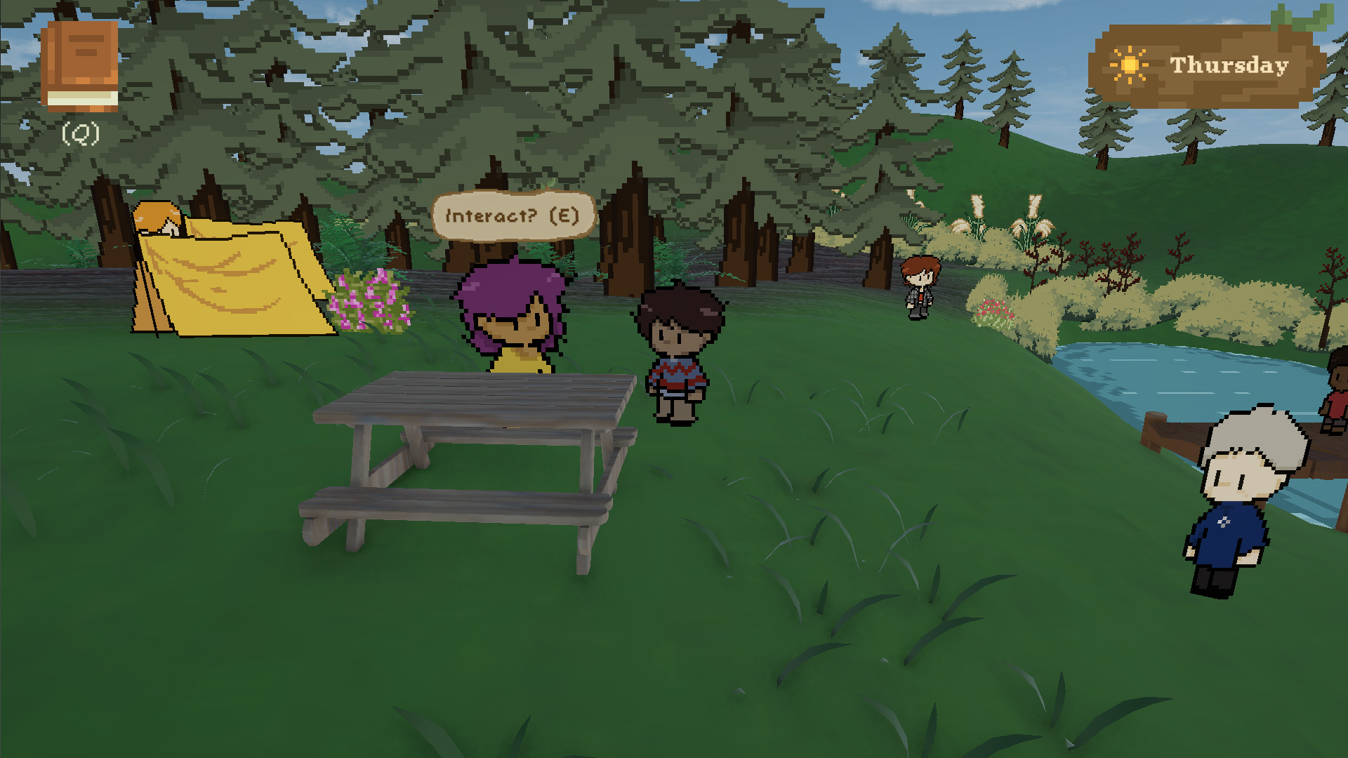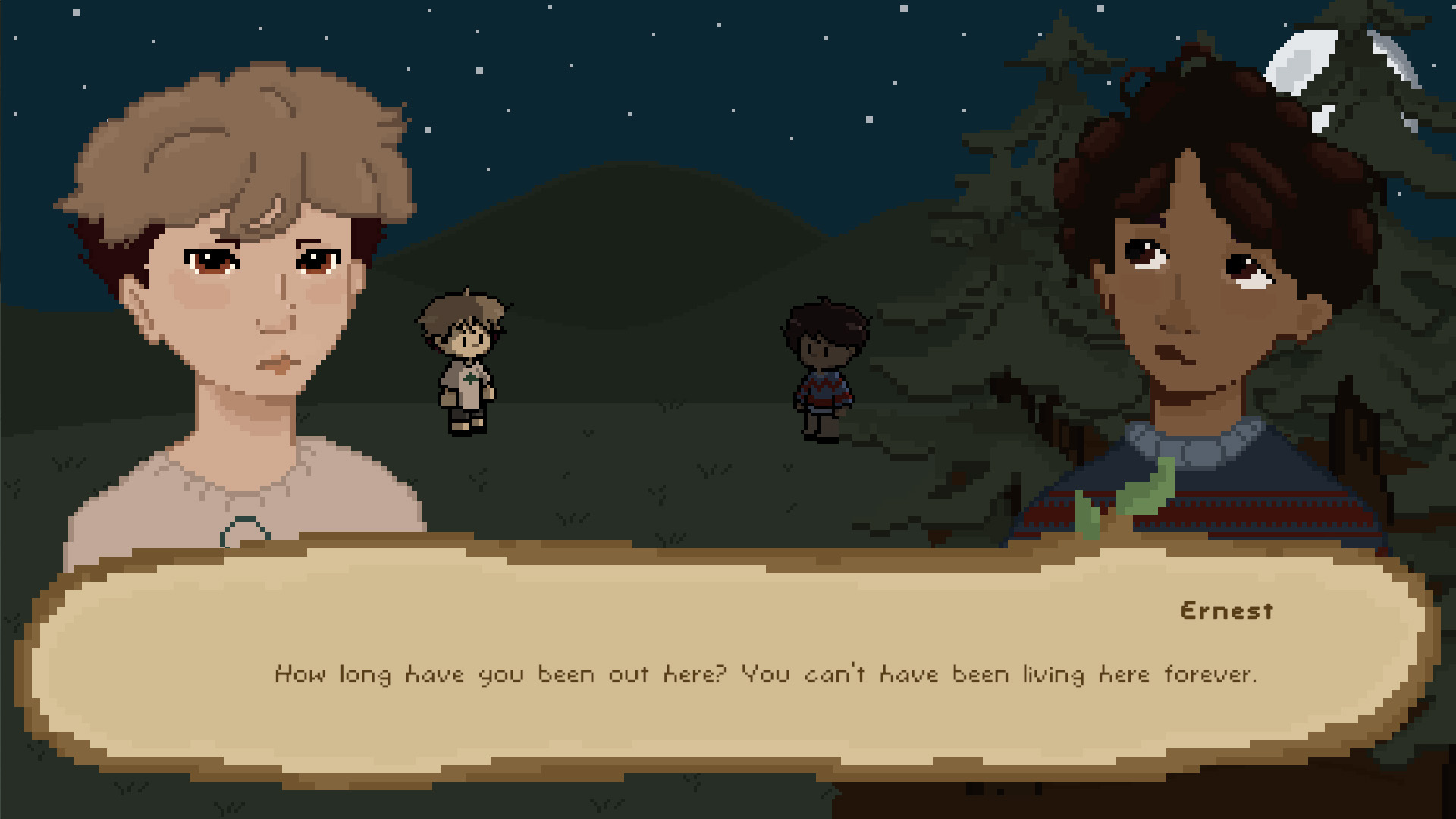Ernest & Alexander is a 2.5D, stylised pixel art narrative-driven game that follows Ernest during a five-day school camping trip. Play as Ernest to guide him through each day, completing camp activities, interacting with his peers and teachers, and getting to know both his character and his world.