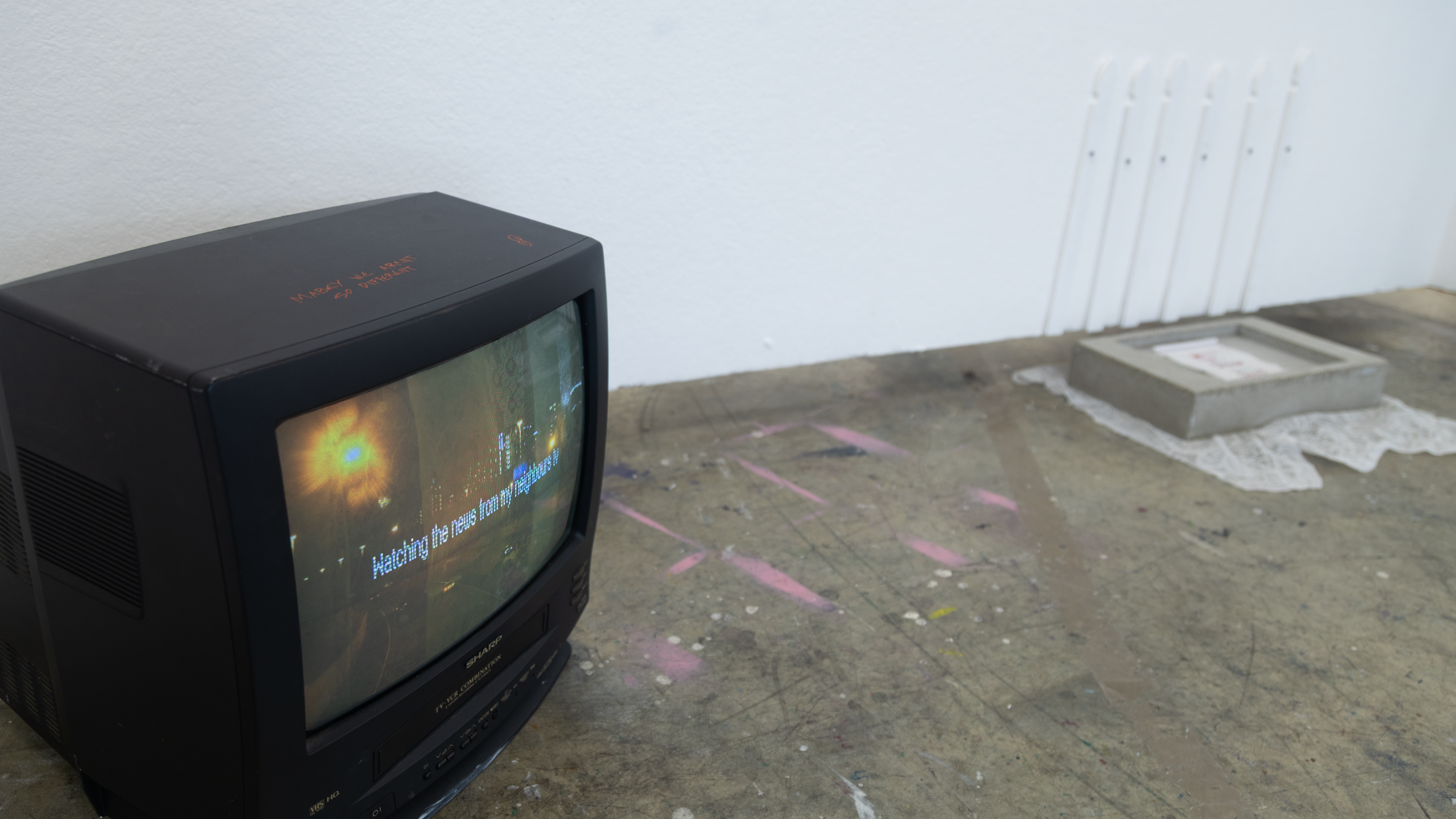 Like many, the old-school rotary washing line remembers home—sometimes from a distance. In it, I find familiarity, followed by urgency; the washing line's upheaval signals changing bodies, landscapes, and lifestyles. I'm watching the news from my neighbour's TV, and I can't look away.