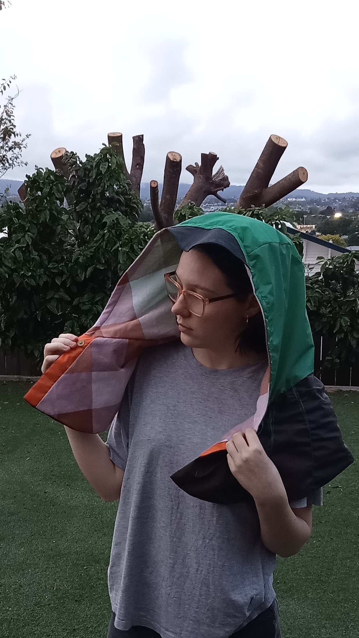 A hooded capelet created to combat Auckland’s unpredictable weather changes. Small enough to fit in a tote bag, but large enough to keep your head and shoulders dry, these New Zealand bird inspired hoods have been designed to keep you comfortable and cute no matter what the weather throws at you.