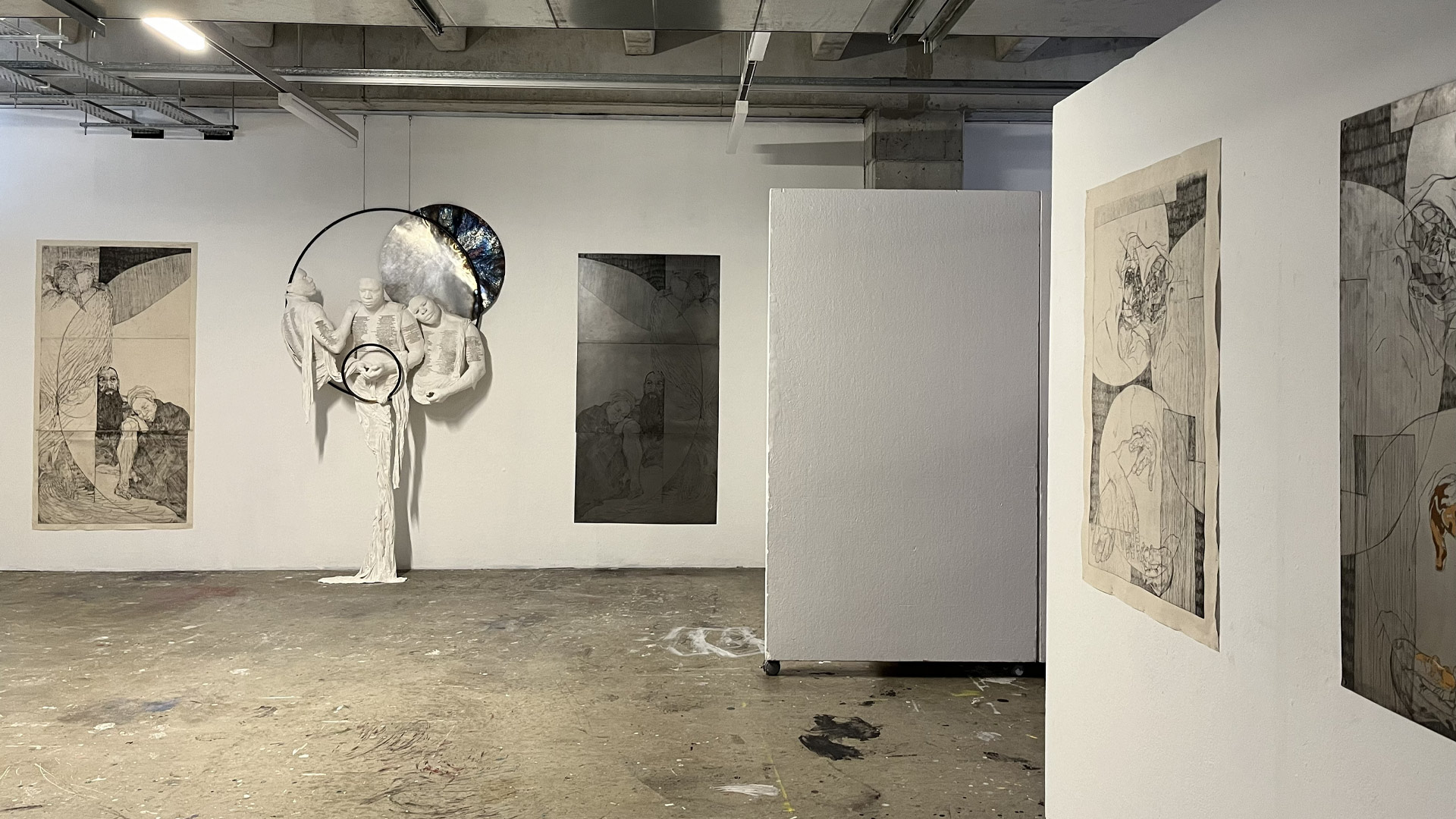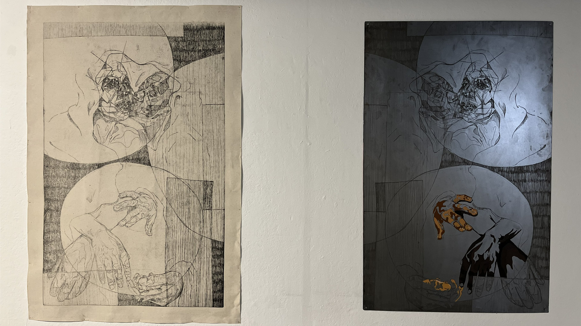 My expanded printmaking practice explores rituals of lament as the expression of grief, a personal and communal mourning expressed before God and witnessed by community. This body of work oscillates in its emphasis on differing points of the printmaking process, namely the matrix, the synthesis of the image, and the final print. I view the matrix as a metaphorical representation of the body, the act of creating the image as the labour of lament, and the print, a testament of the form that the grief once took. Each composition is a reflective construction, a collation of lived and observed experience, history, theology, and biblical narrative shaped into visual psalms and liturgies. The matrix holds potential in the ability to be changed. I display both prints and their matrices to highlight this duality: the memory of grief and the possibility of renewal. Lament then becomes an act of hope.