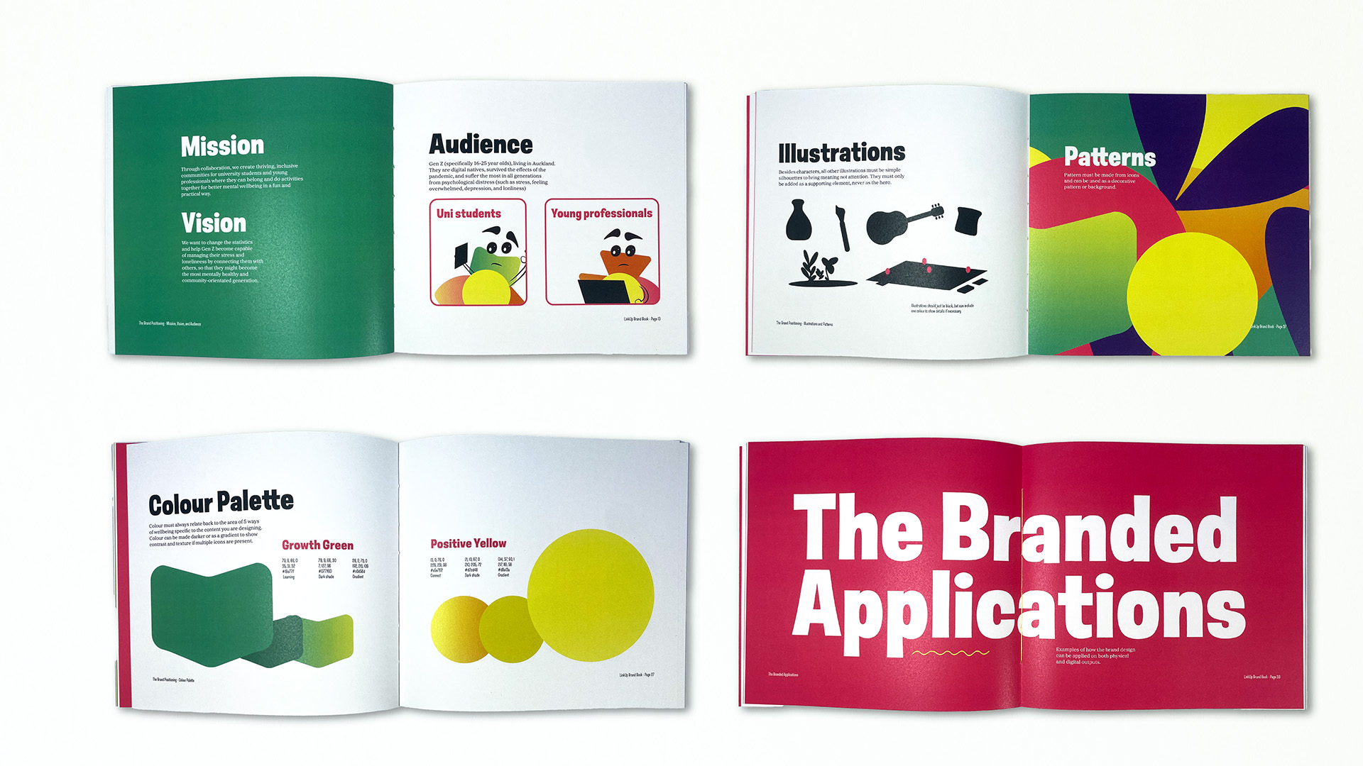 Studies show that Gen Z have the highest ever generational rates of psychological distress and loneliness. While there are some campaigns focusing on mindset, there is inadequate material with practical information to help Gen Z. This project explores how visual communication can encourage Gen Z to participate in different activities to help with their rising rates of stress and loneliness, through a branded pack and social media. Situated in the broader area of mental health and wellbeing, the design incorporates shapes that relate to the Five Areas of Wellbeing, and balances how Gen Z is a very digital generation that spends less time interacting face to face through both digital and physical outputs. This project contributes to society by providing a way for Gen Z to improve their wellbeing, and encourages conversations around design impact and wellbeing.