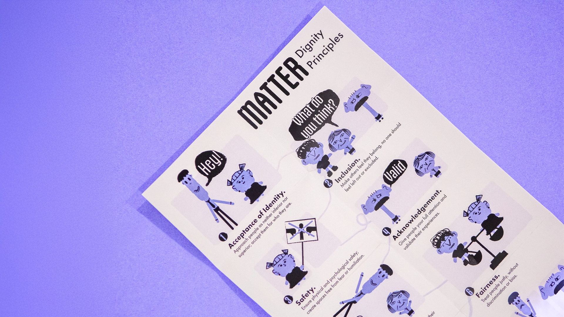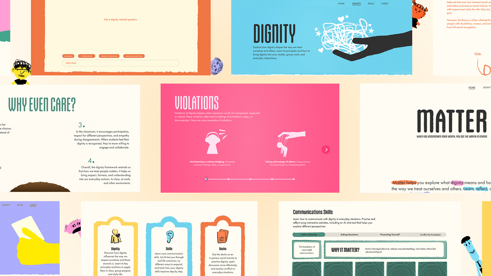 This project helps young adults learn to communicate and manage conflict in class by introducing dignity as a practical, usable toolkit rather than an abstract concept. Through an accessible learning website, young adults are guided to recognise dignity violations, understand their impact, and explore strategies for constructive dialogue at their own pace.