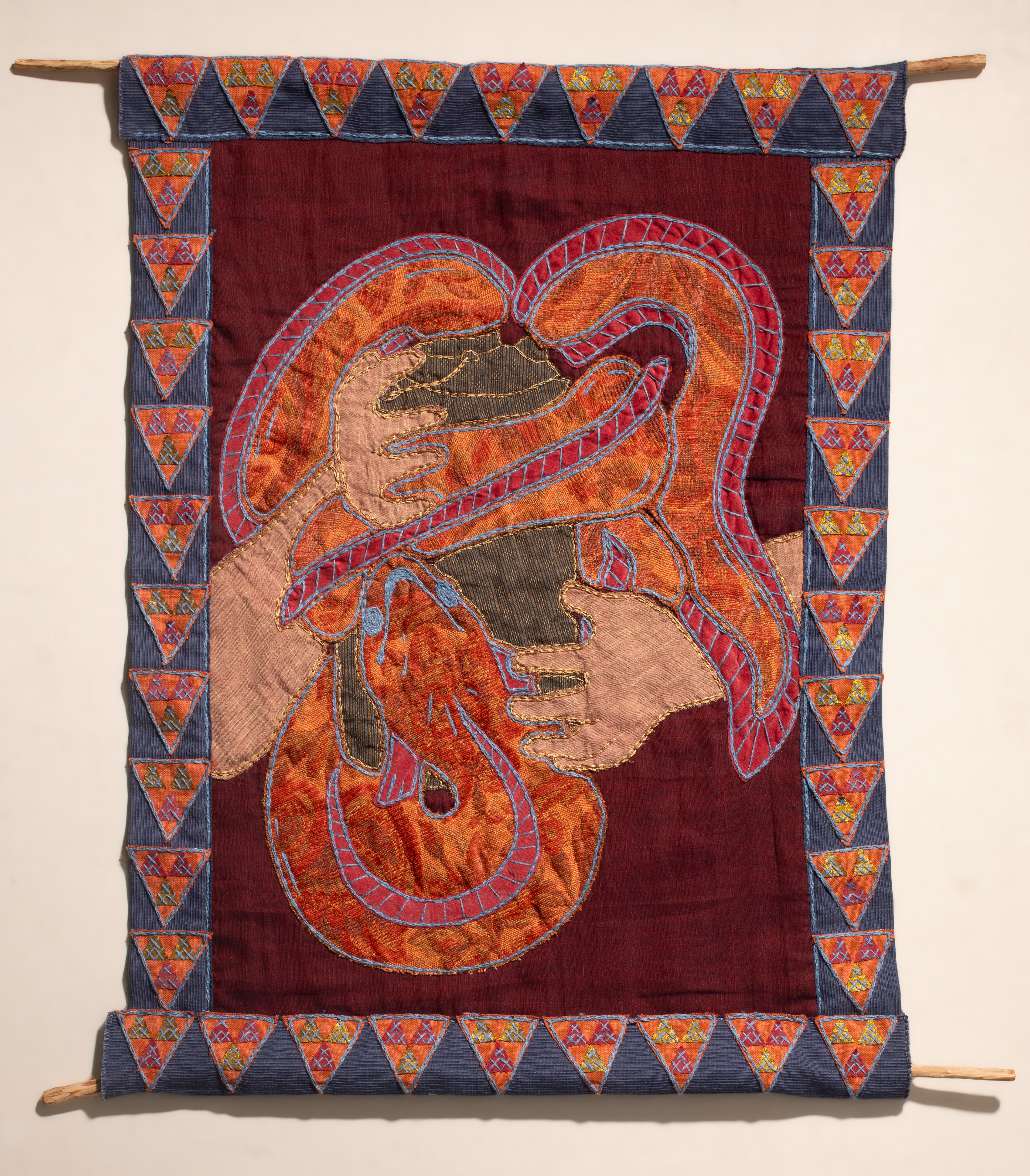 By experimenting with ways of communication through a craft that documents differently from Māori verbal records or Pākehā written formats, I have developed new ways of securing oral histories within story quilts and through deliberate action in collaborative net-making. Materials rich with personal connections, generational crafting skills, and body movement as note-taking all contribute to the layers of story in each of my artworks.