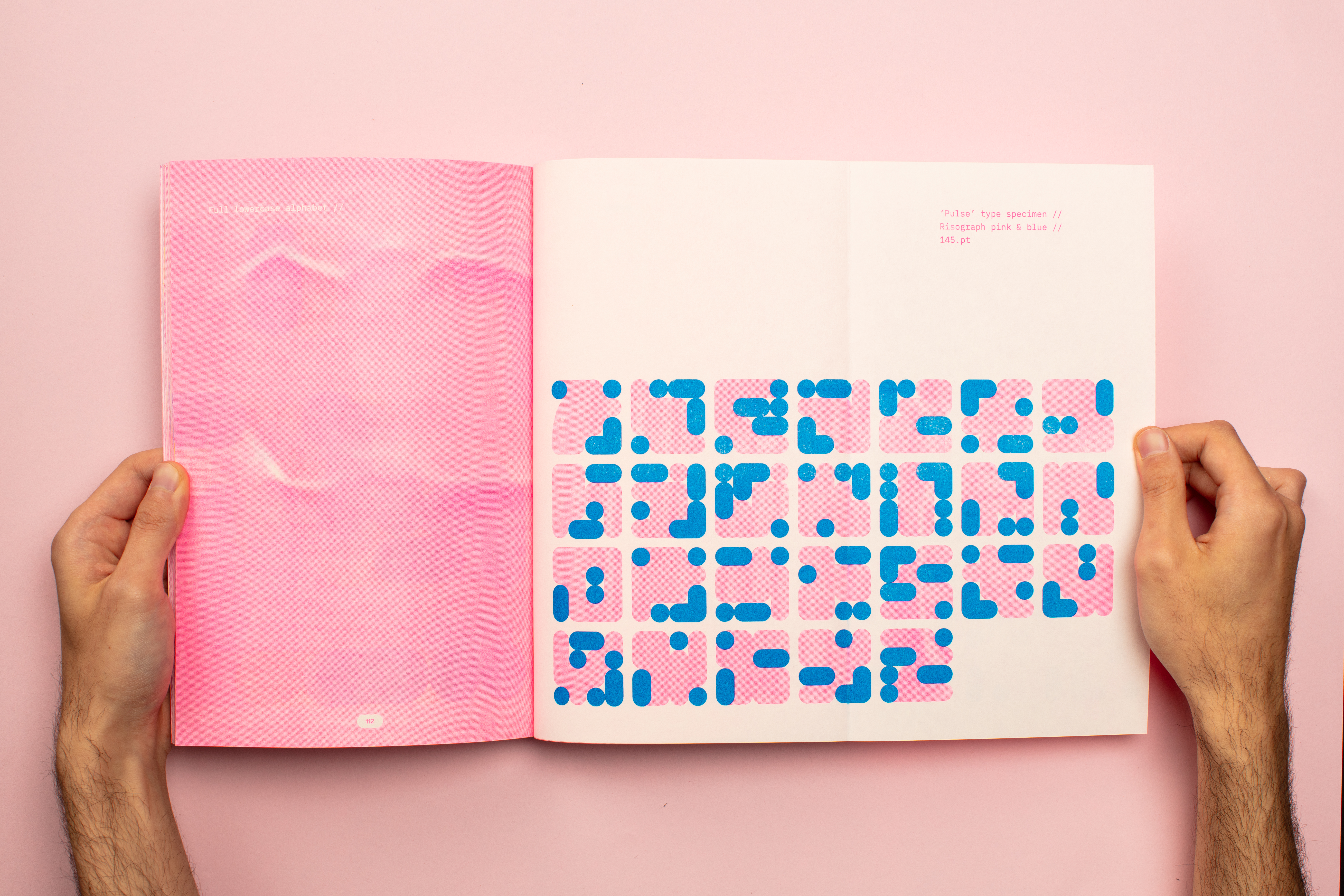 Pulse is a collection of abstract letterforms, interpreted and inspired by Steve Reich's seminal 1978 album 'Music for 18 Musicians'. Pulse blurs the lines of legibility and functionality, asking viewers to read these letterforms emotionally through form, shape and colour rather than their traditional linguistic function.