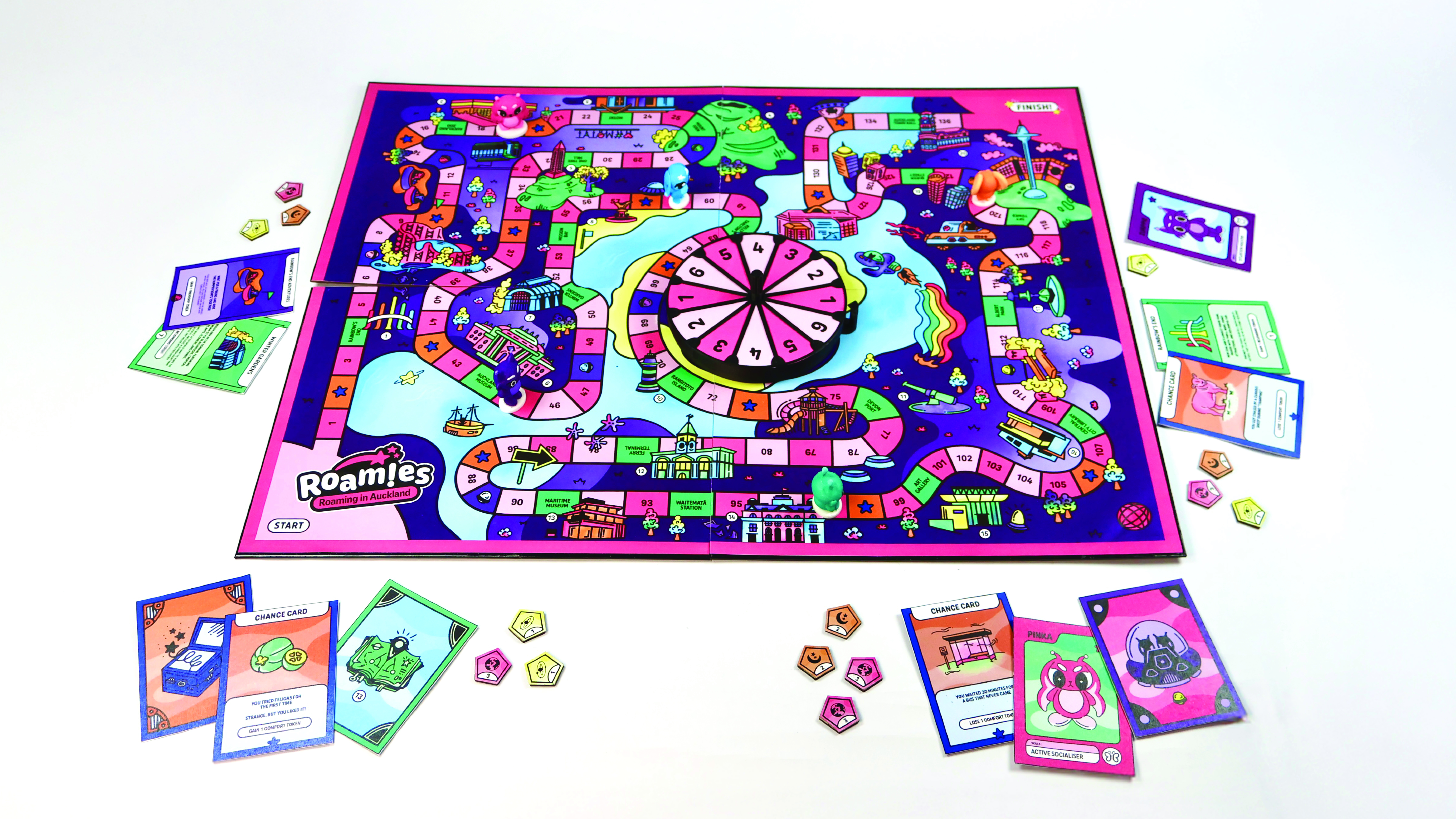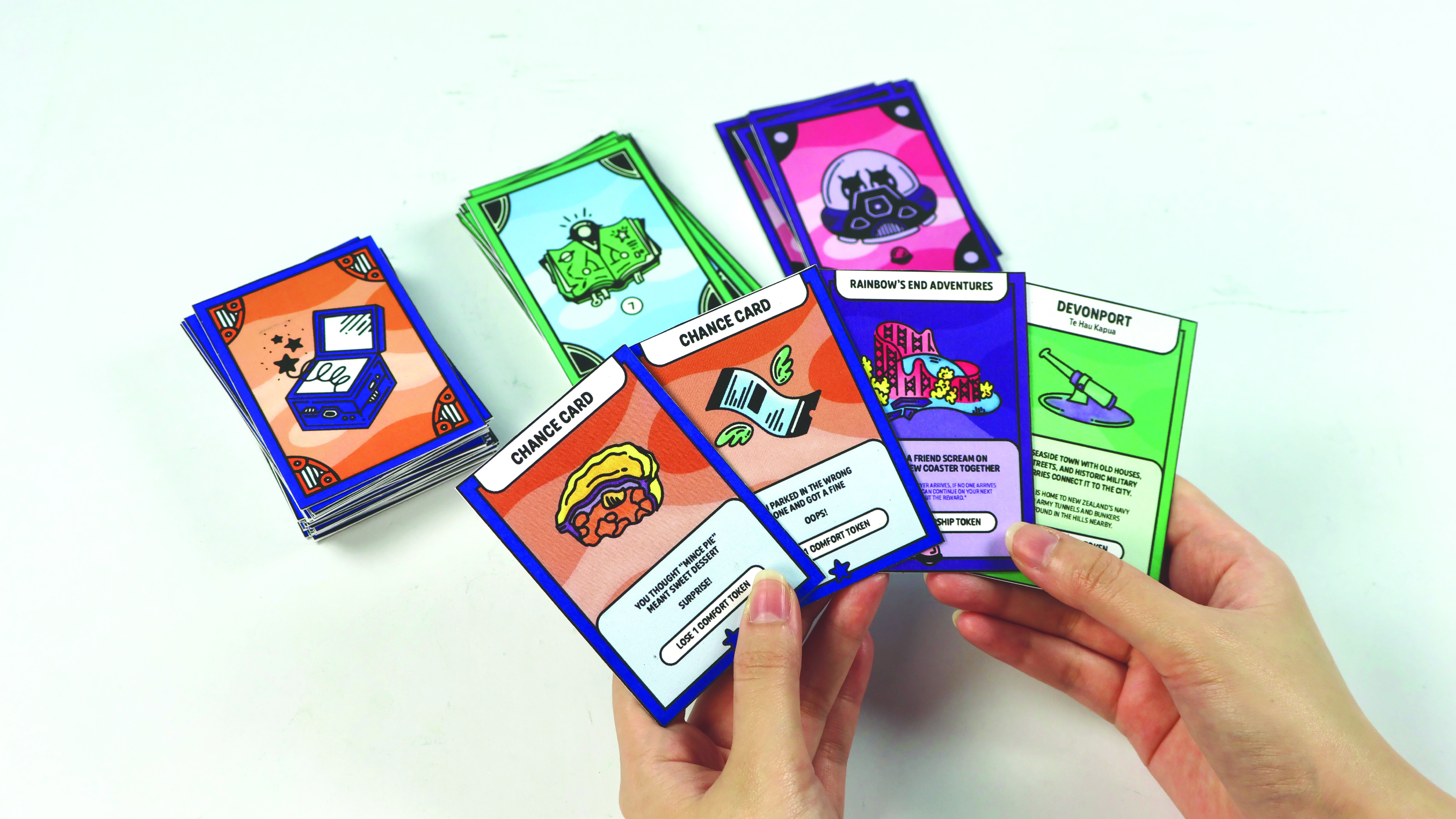 My project explored how design and gamification can support university diaspora students in finding belonging and adapting to a new environment. I was motivated by my own experiences as an international student and the struggle of adjusting to life in Auckland when I first arrived. In response, “Roamies: Roaming in Auckland” is a board game brand that encourages students to make new friendships, explore the city and learn about Kiwi culture in a playful and interactive way.