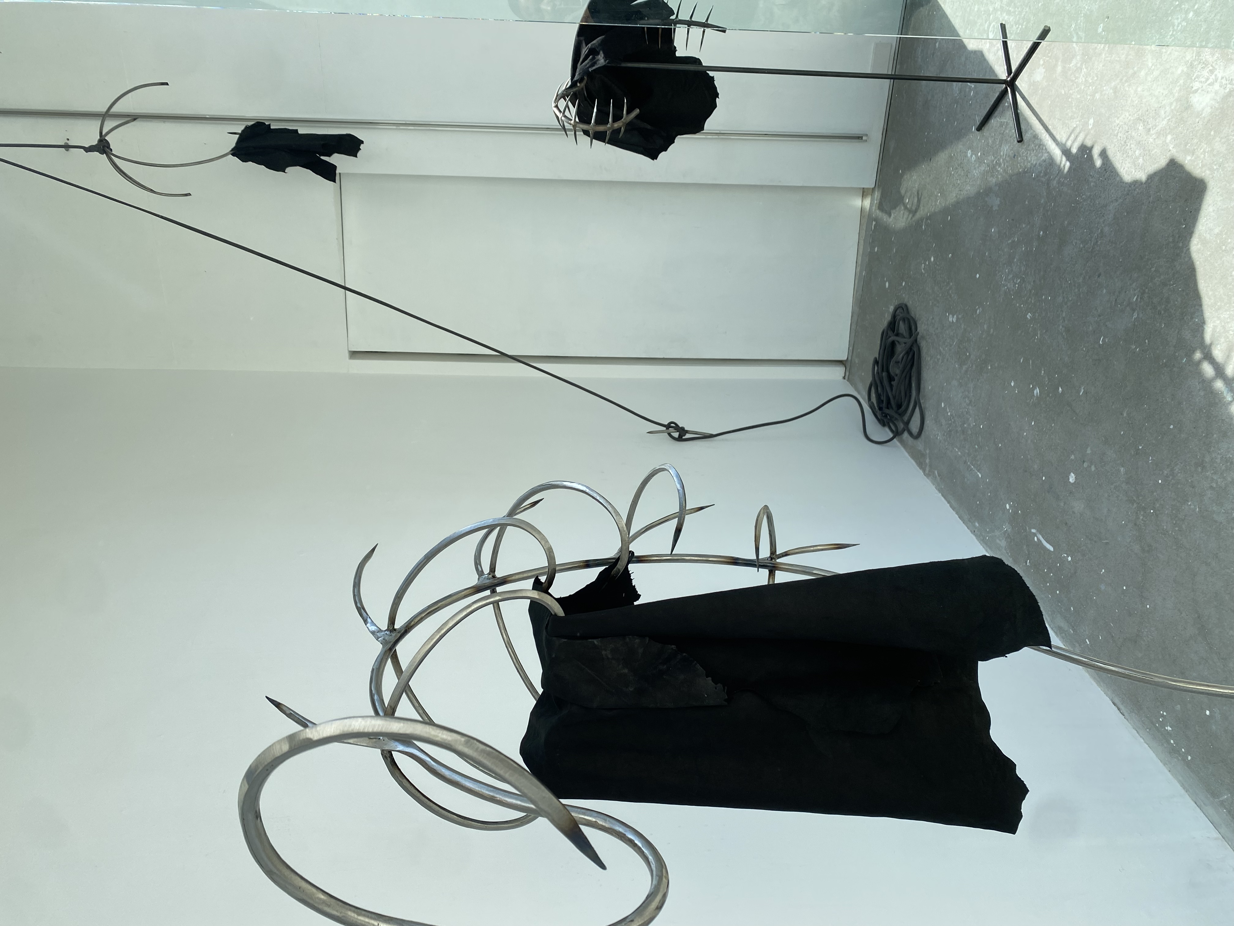 Alternating between the eye of the prey and predator, both sides of the story take place through a spectrum of methods: story, escape, obsess, and morph. Narratives shift, unravel, and mutate within the series of works. Here, the story comes to life through worldbuilding. Multiple lifeforms threaded across evolving structures, garments, and adorned bodies.