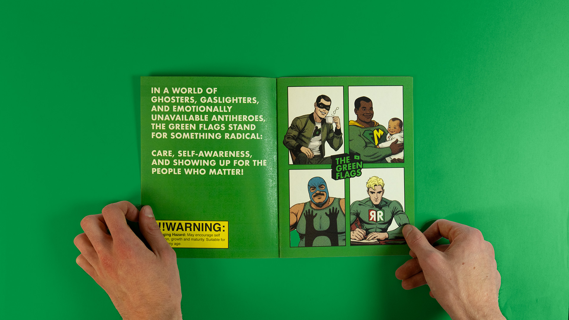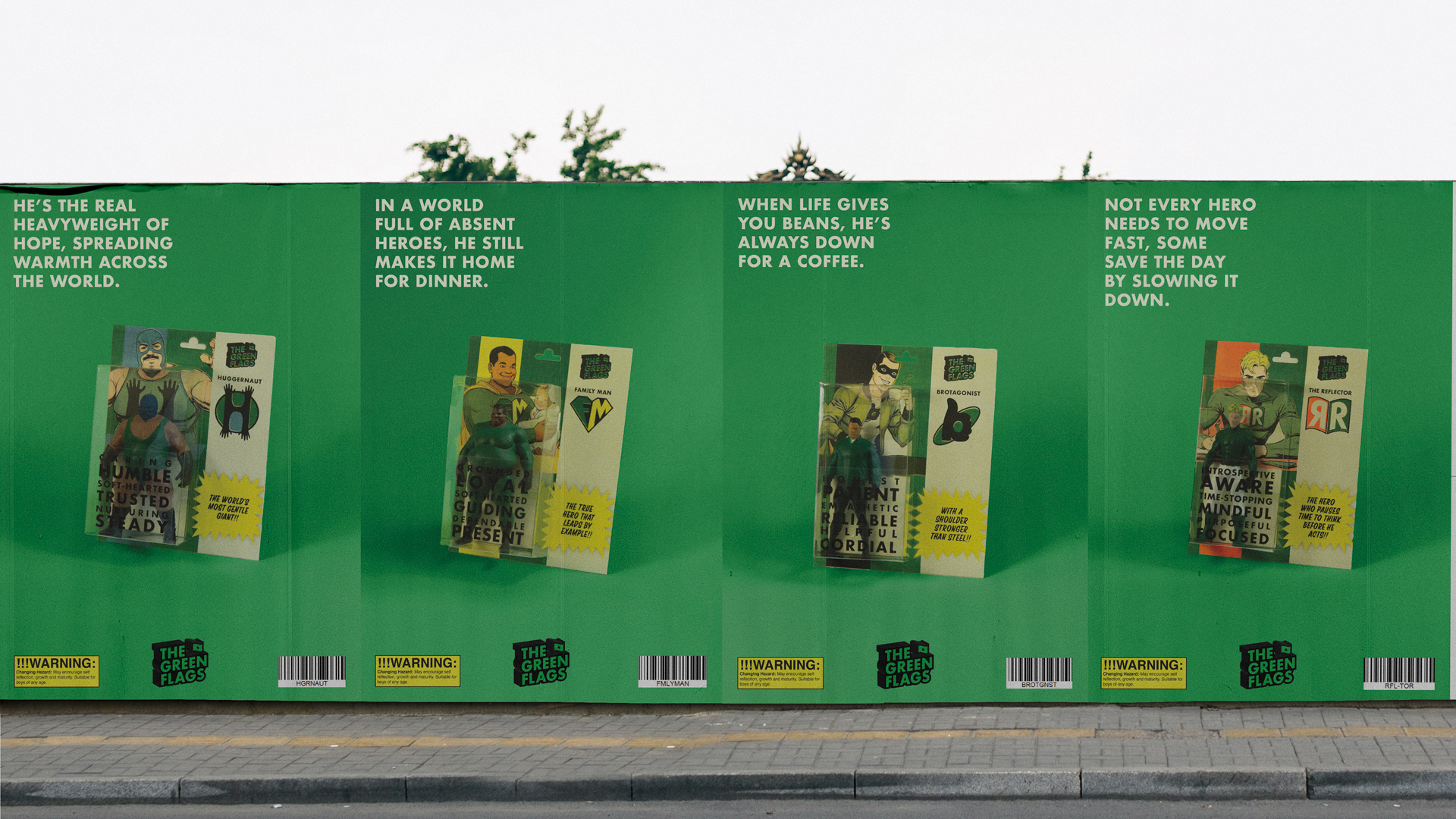 The Green Flags is a satirical design project that explores how campaign design and parody can challenge toxic masculinity and promote healthier models of manhood. In response to the growing number of young men consuming online content that leads them toward “Alt-Right” and hyper-masculine ideologies, this project aims to redefine what it means to be manly. Instead of glorifying aggression or emotional detachment, The Green Flags celebrates qualities such as kindness, empathy and patience, showing that these traits can be just as powerful.