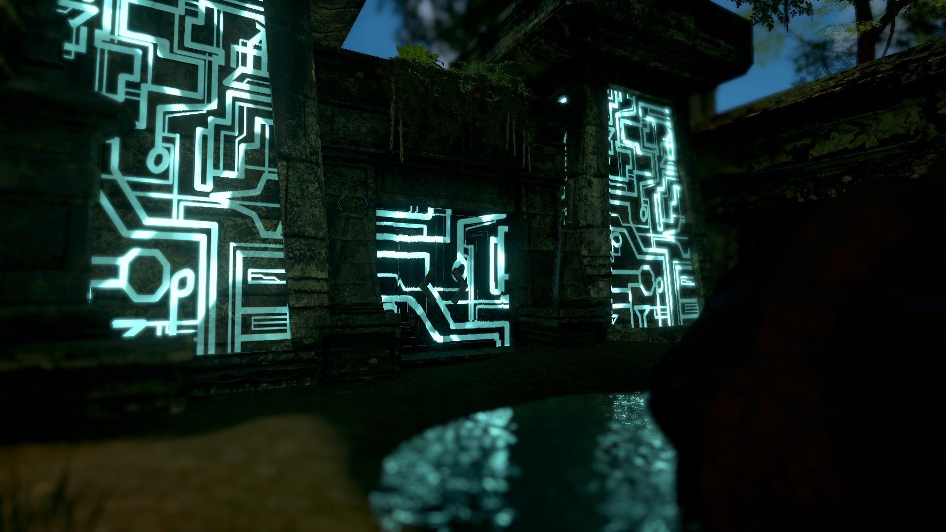My project explores how environmental storytelling can be utilized to communicate history and lore without direct exposition. This project involved blending Angkor inspired ruins with signs of alien influence. The alien element took the form of sleek blue materials and glowing blue circuits, embedded in the environment and structures.