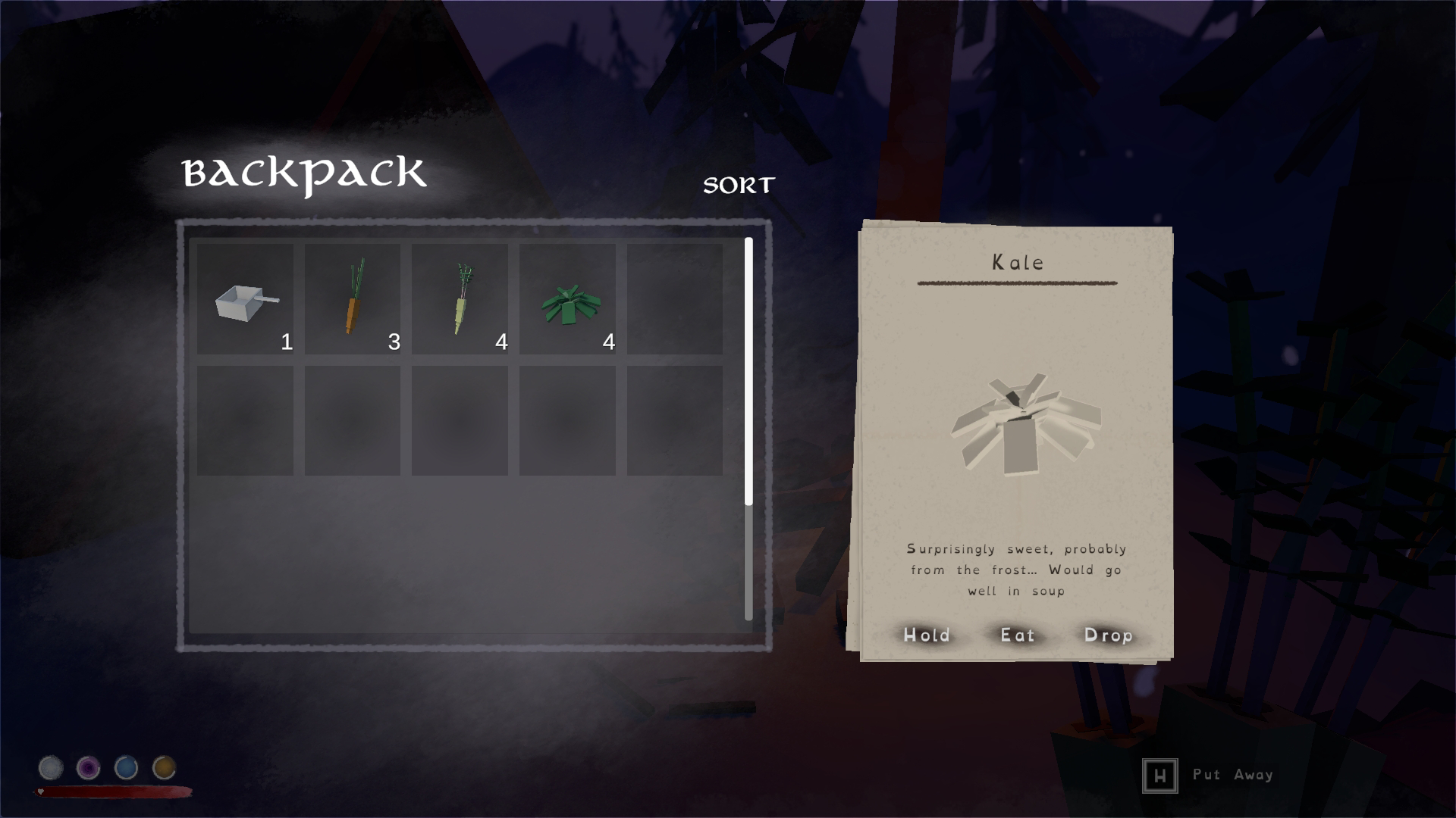 What makes my project unique is my goal to challenge myself as a solo developer to design an atmospheric survival game by prototyping survival elements and mechanics such as crafting, cooking, and collecting. Although this is still a work in progress to develop and polish core mechanics, I'm very pleased with my current result, this experience has motivated me to deepen my skills and contribute to the industry.