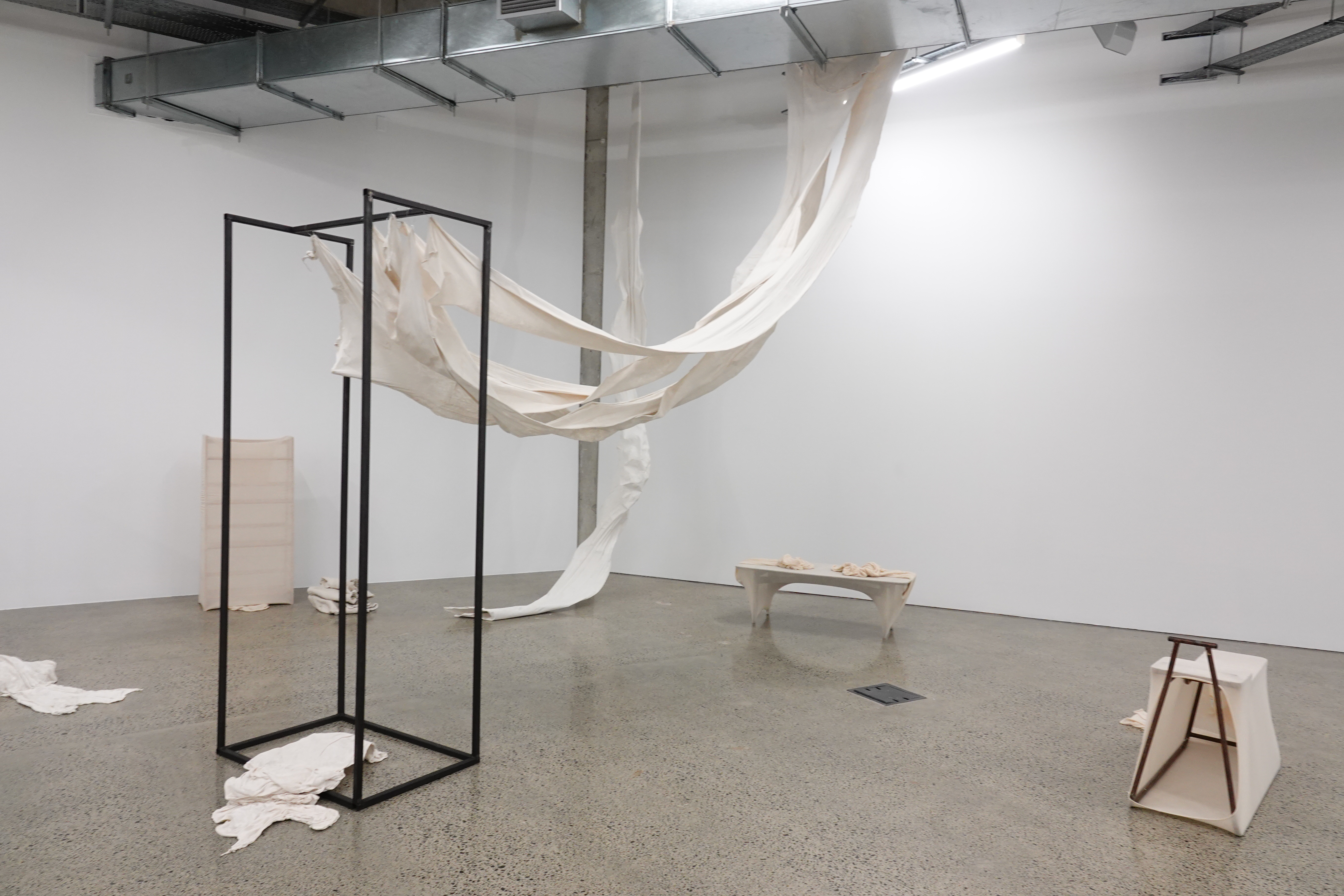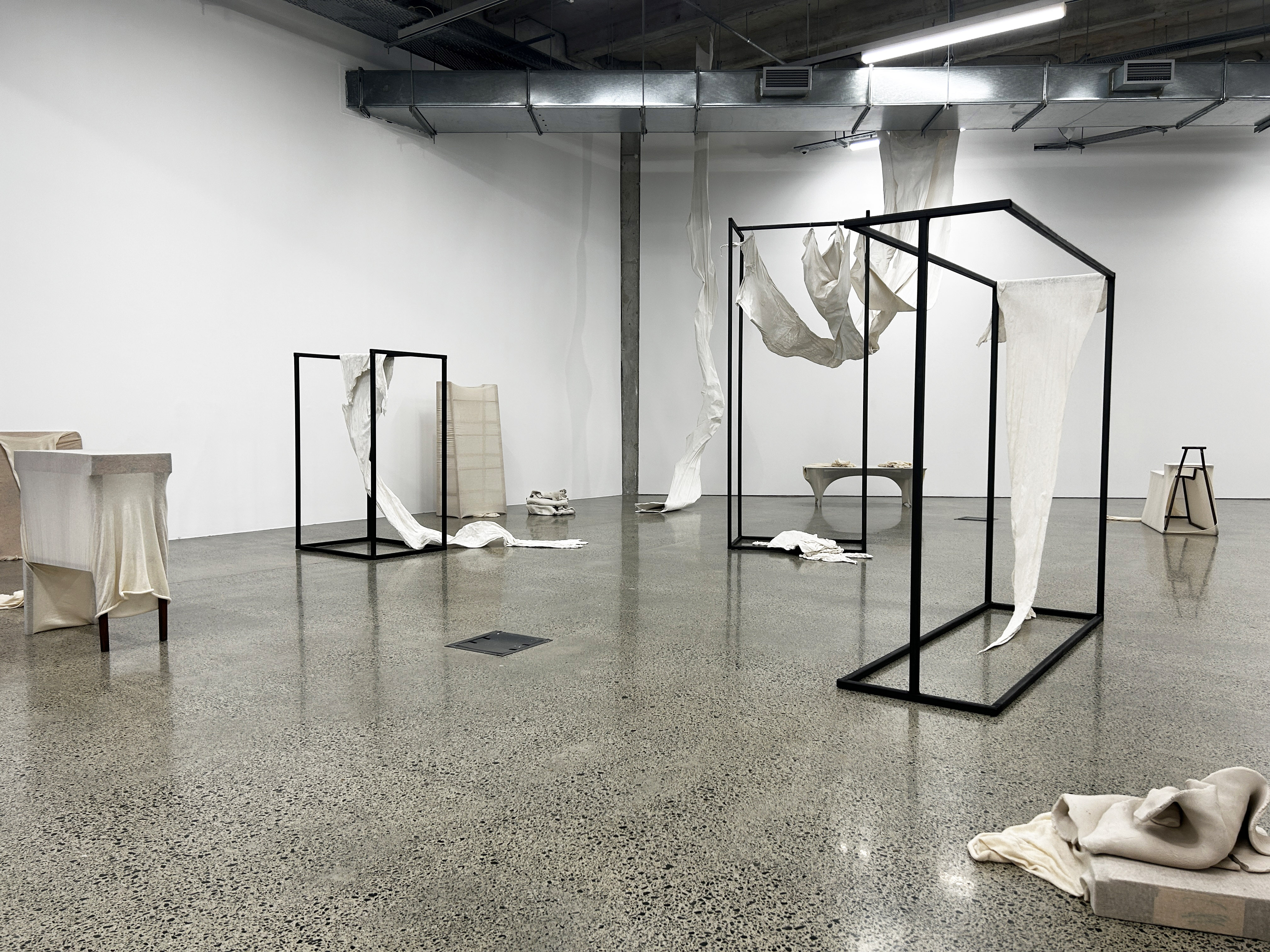 By engaging with the liminal, both as a conceptual threshold and material state, this sculptural project examines how intimacy can be revealed through spatial and material relationships within installation. Moving beyond an initial engagement with the abject and the singular sculptural object, this practice explores the affective potential of material proximity, weight, gravity, and scale within an installation framework. Through arrangements of objects and armatures, the work seeks to implicate encounters that foreground embodied perception, drawing attention to the physical and psychological tensions between the viewer, form, and space.