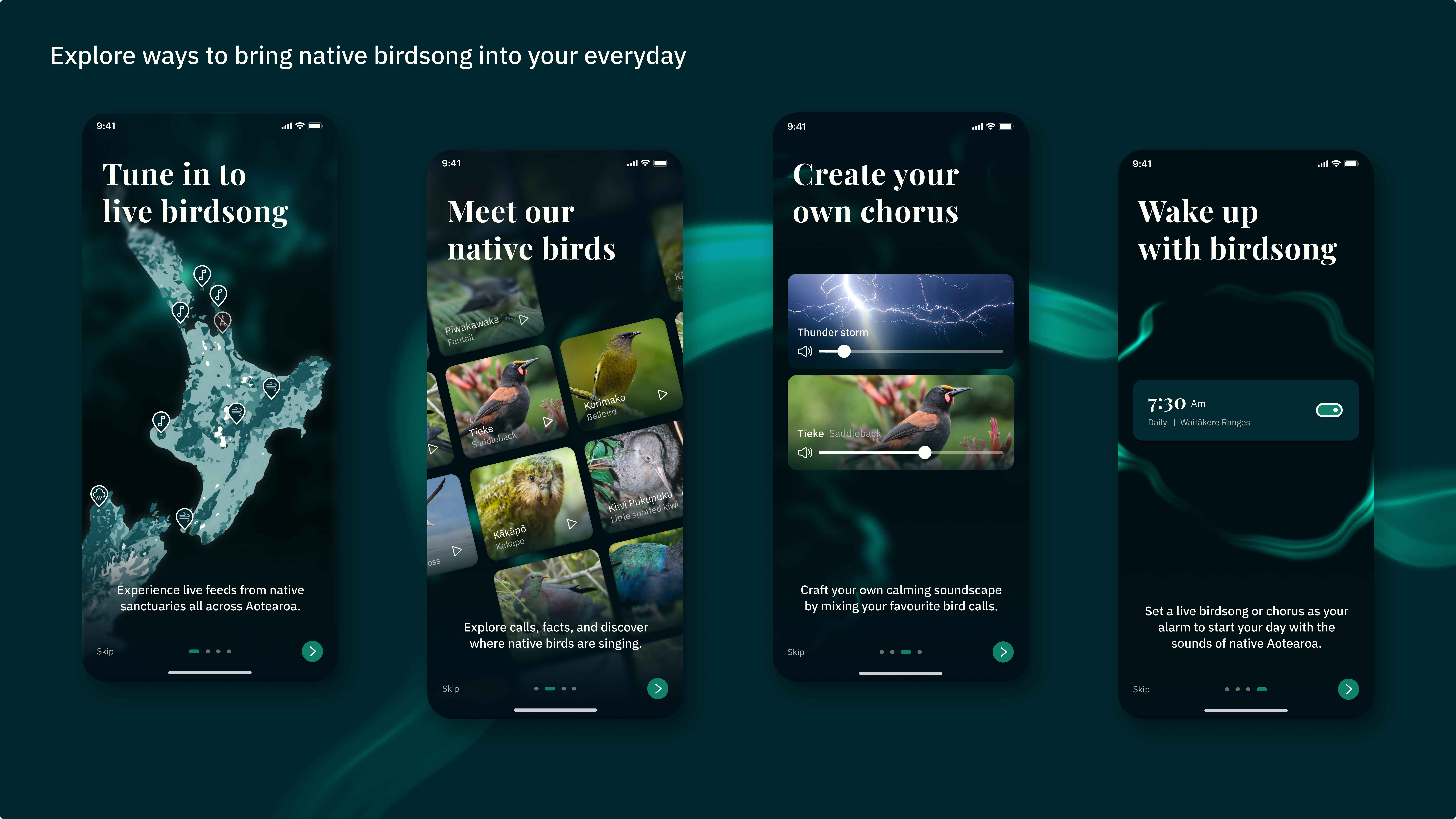 Urban birdsong explored how experience design could reconnect highly urban locals with native birdsong, inviting them to pause, feel calm, and reflect on the quietness of our unique chorus in the city. The project also supports wellbeing: listening to native birdsong lowers stress and anxiety, offering restorative moments amid the urban rush.
