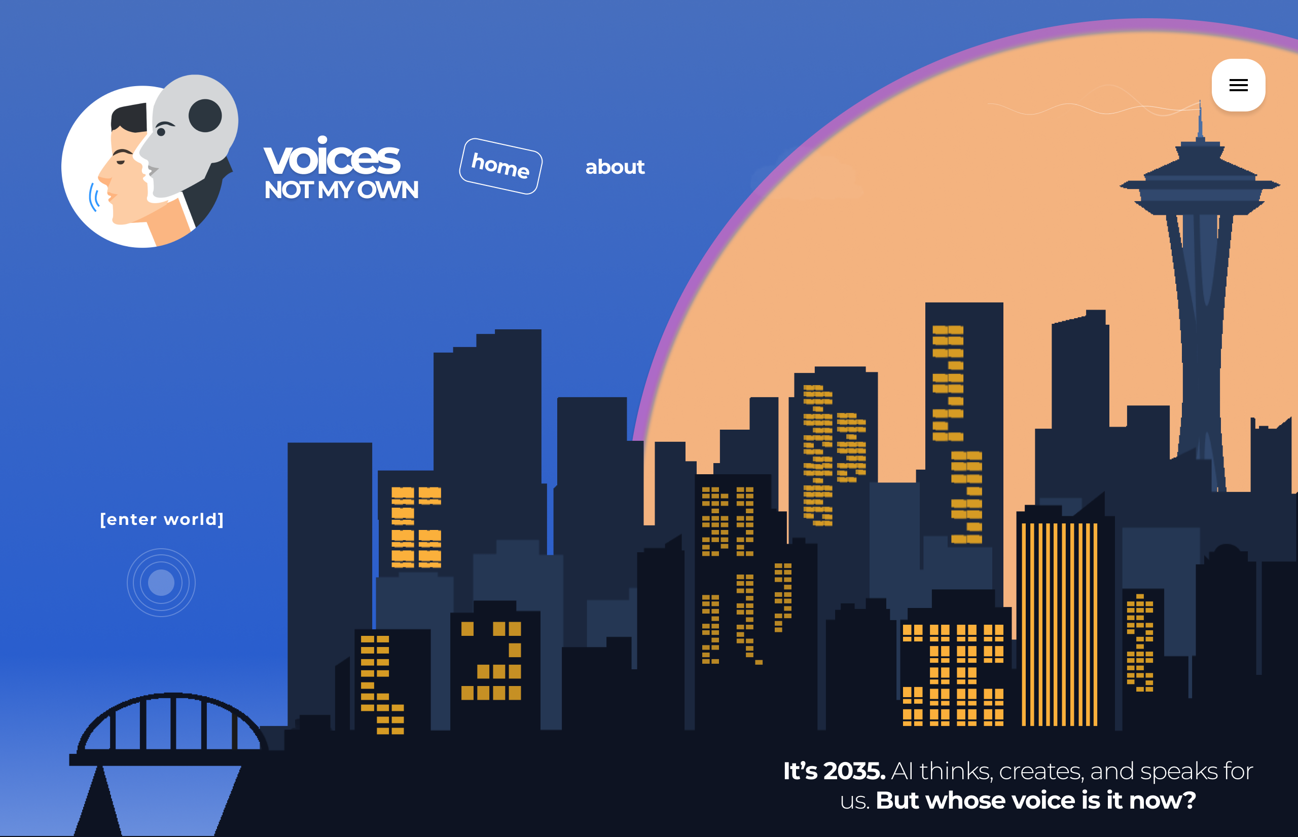 By blending speculative world-building with interaction design, Voices Not My Own explores how unseen systems quietly influence creative decision-making, inviting audiences to reflect and consider their own usage of AI today.