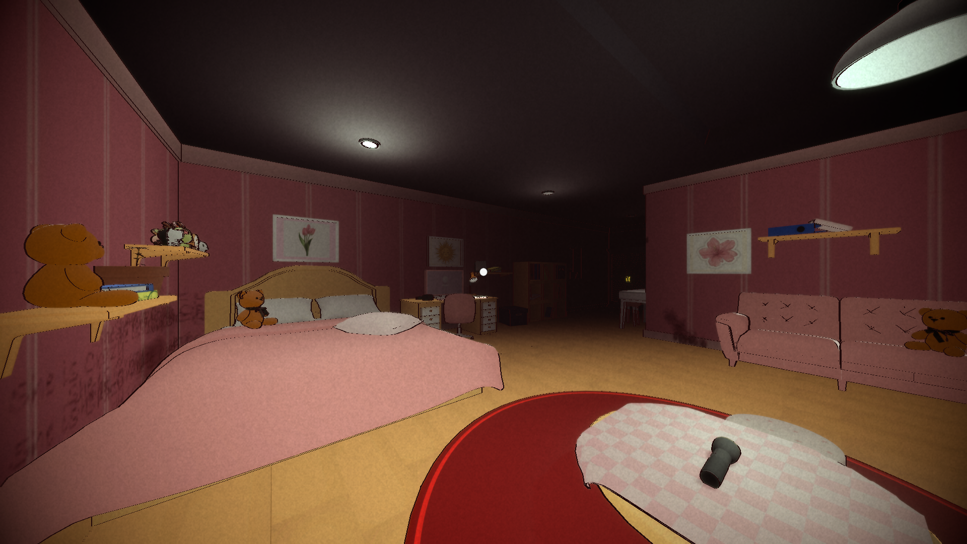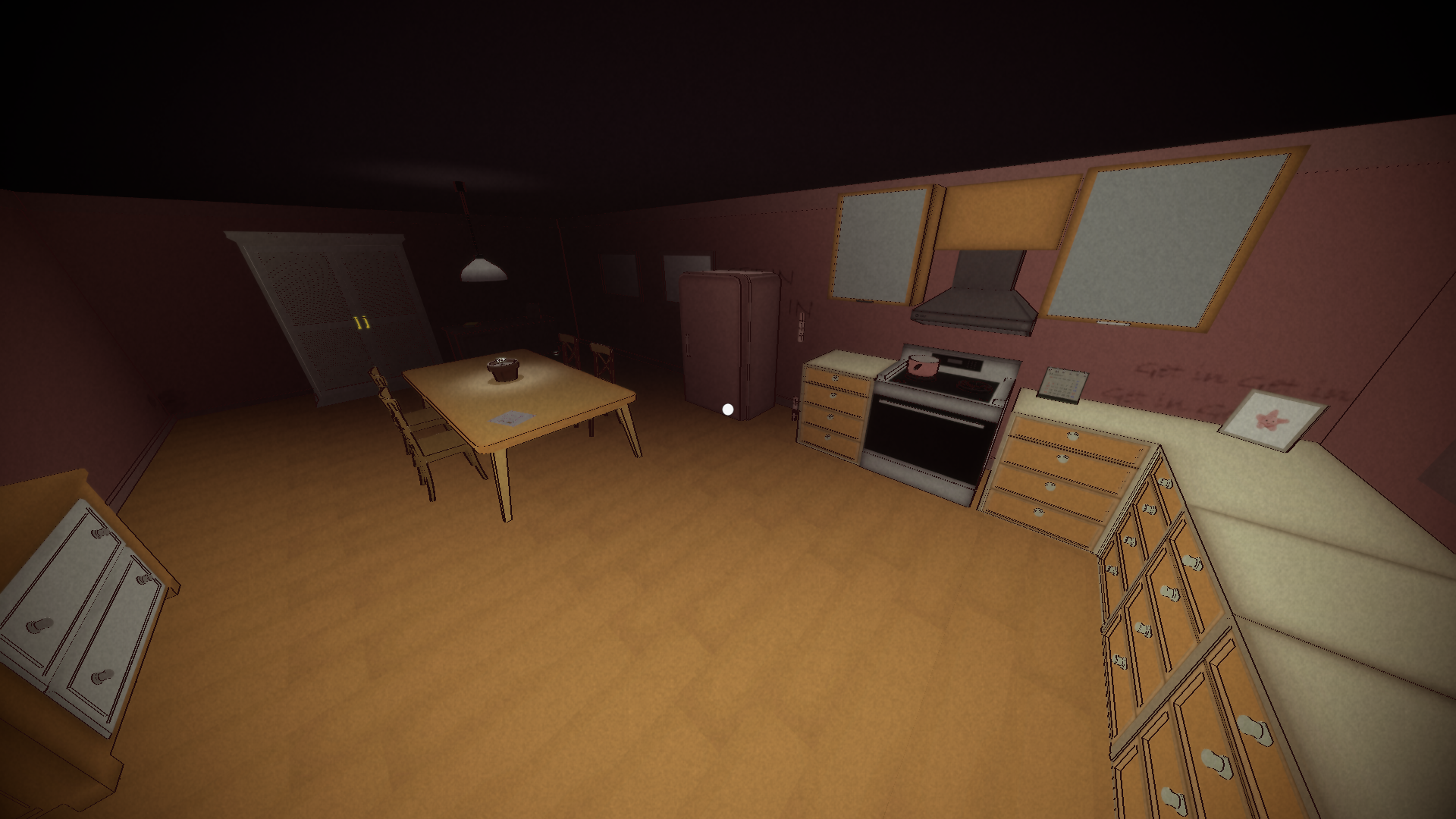 Key design features include cel-shaded visuals, flickering lights, eerie writings on the walls, and environmental storytelling through interactable clues and objects. I used Maya for modelling, Substance Painter for texturing, and Unity’s lighting tools to build mood and emotion.